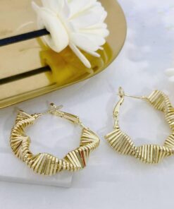 Hermoso arete trabajado en acero quirúrgico 316L, con doble baño en oro 14K.