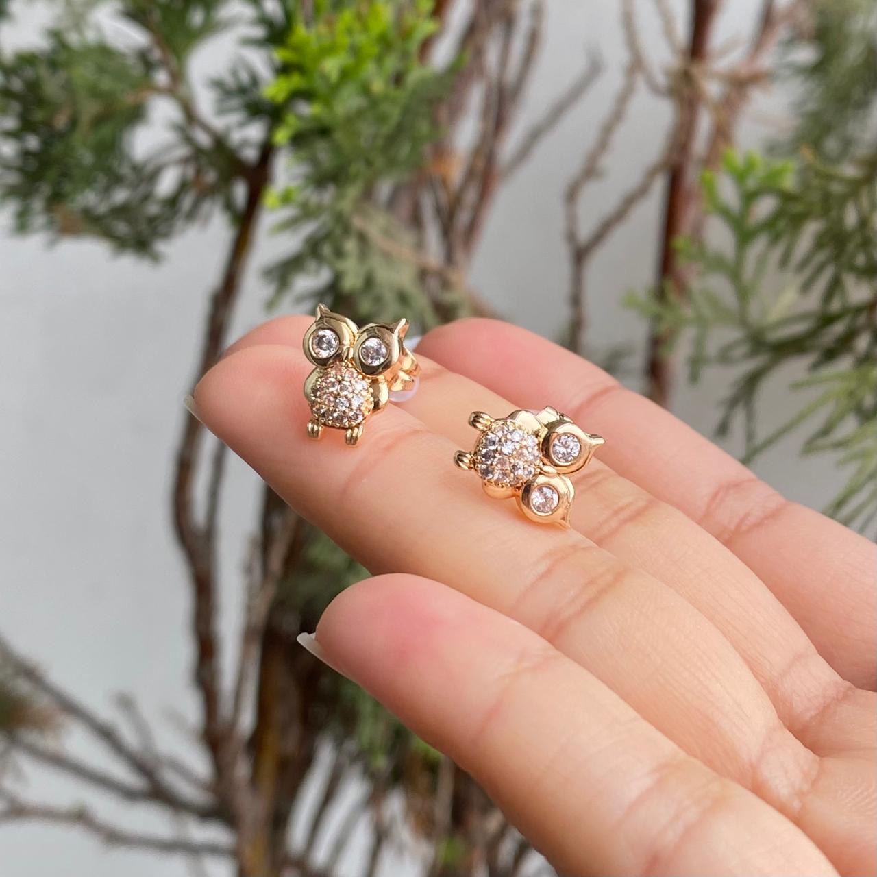 Finos Aretes trabajados en acero quirúrgico 316L con doble baño en oro 18k. e incrustaciones de cristales.