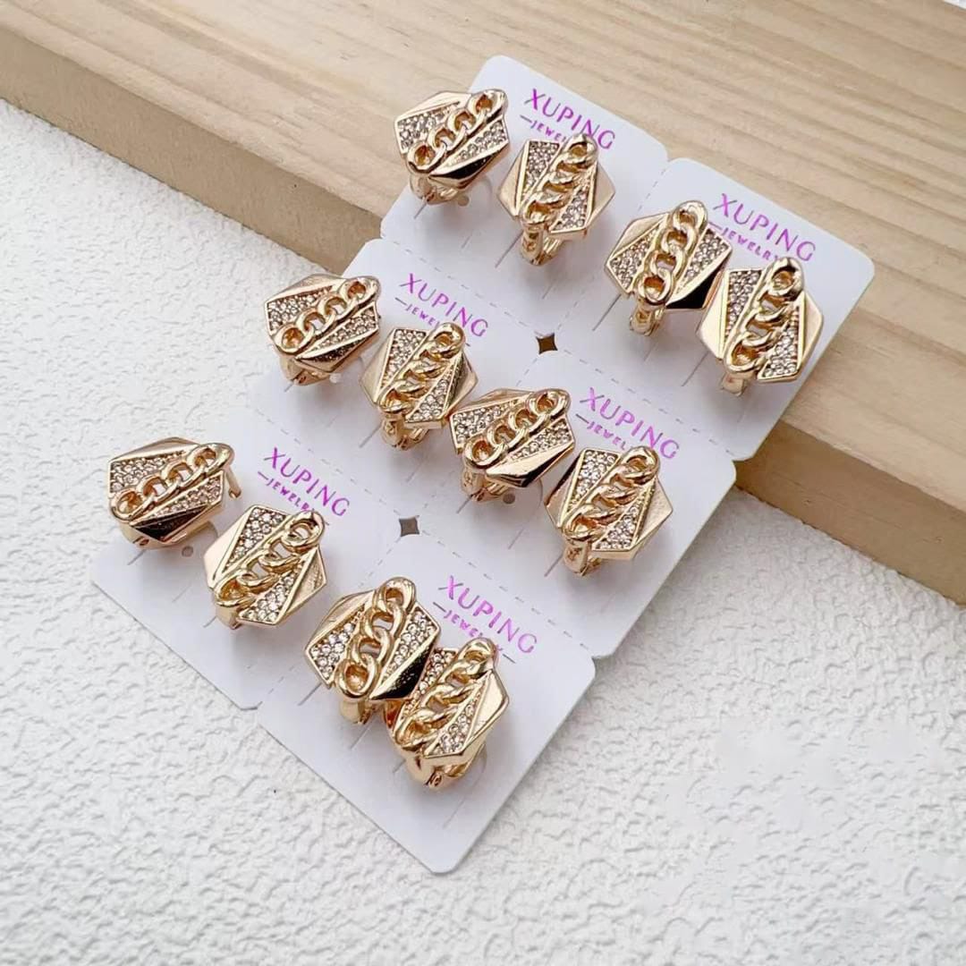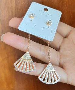 Modernos y exclusivos aretes trabajados en acero quirúrgico 316L y con doble baño en 18k. e incrustaciones de cristales.