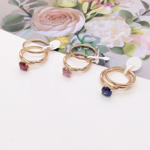 Hermoso anillo trabajado en acero quirúrgico 316L, con doble baño en oro 18K e incrustaciones de cristal.