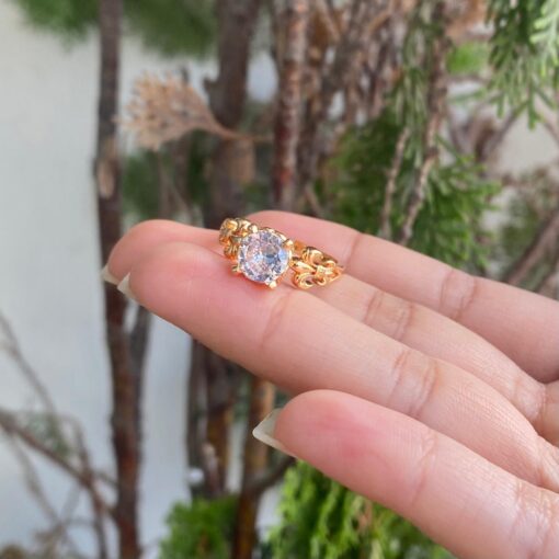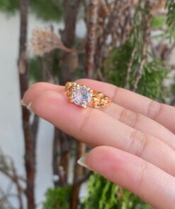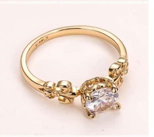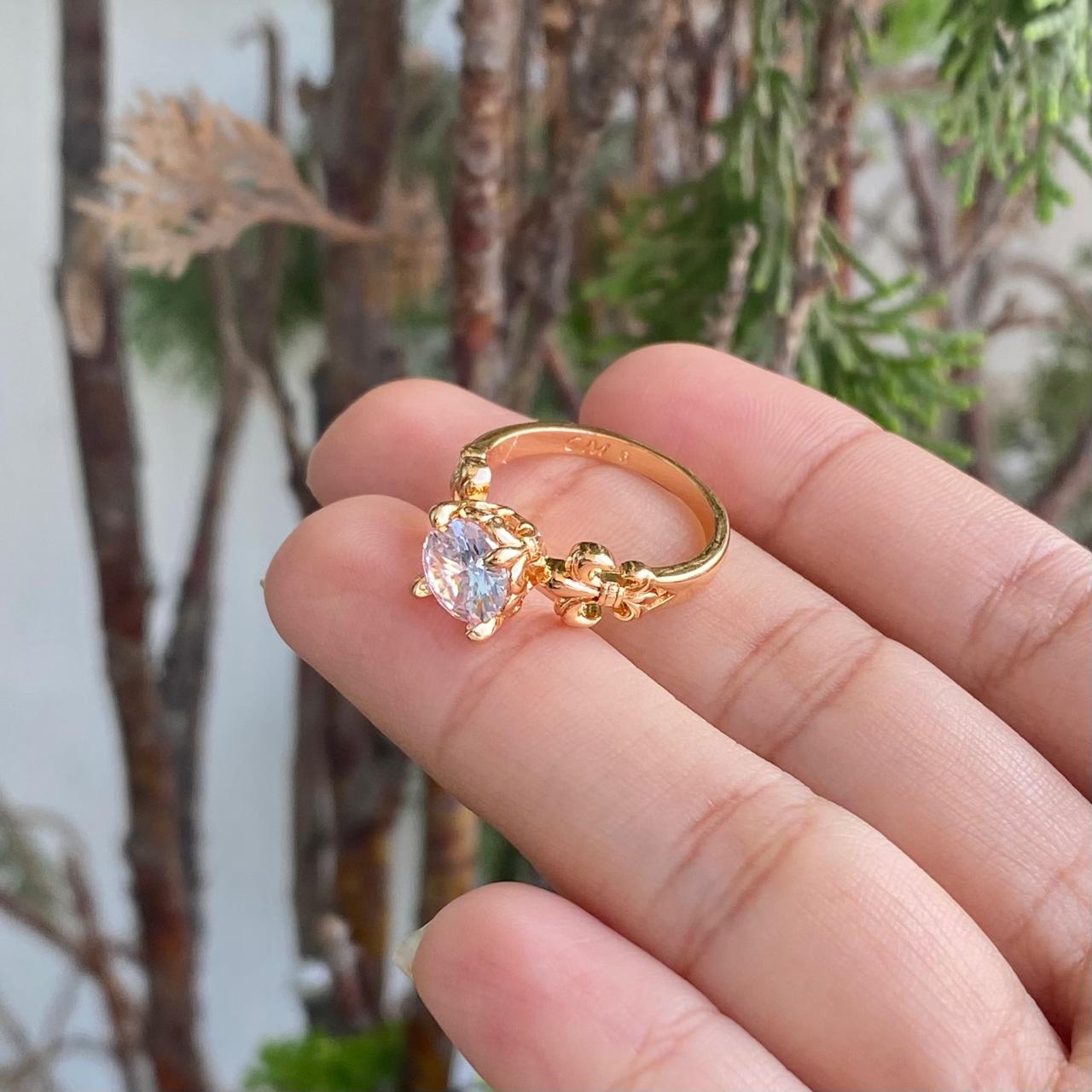 Hermoso anillo trabajado en acero quirúrgico 316L, con doble baño en oro de 18K. e incrustaciones de cristal.