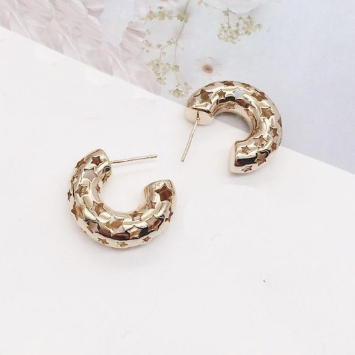 Modernos Aretes trabajados en acero quirúrgico 316L y con doble baño en oro 18k. e incrustaciones de cristales.