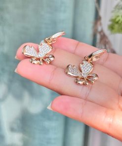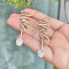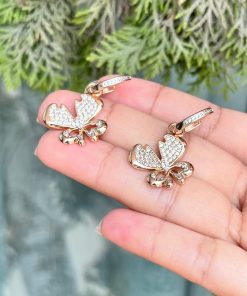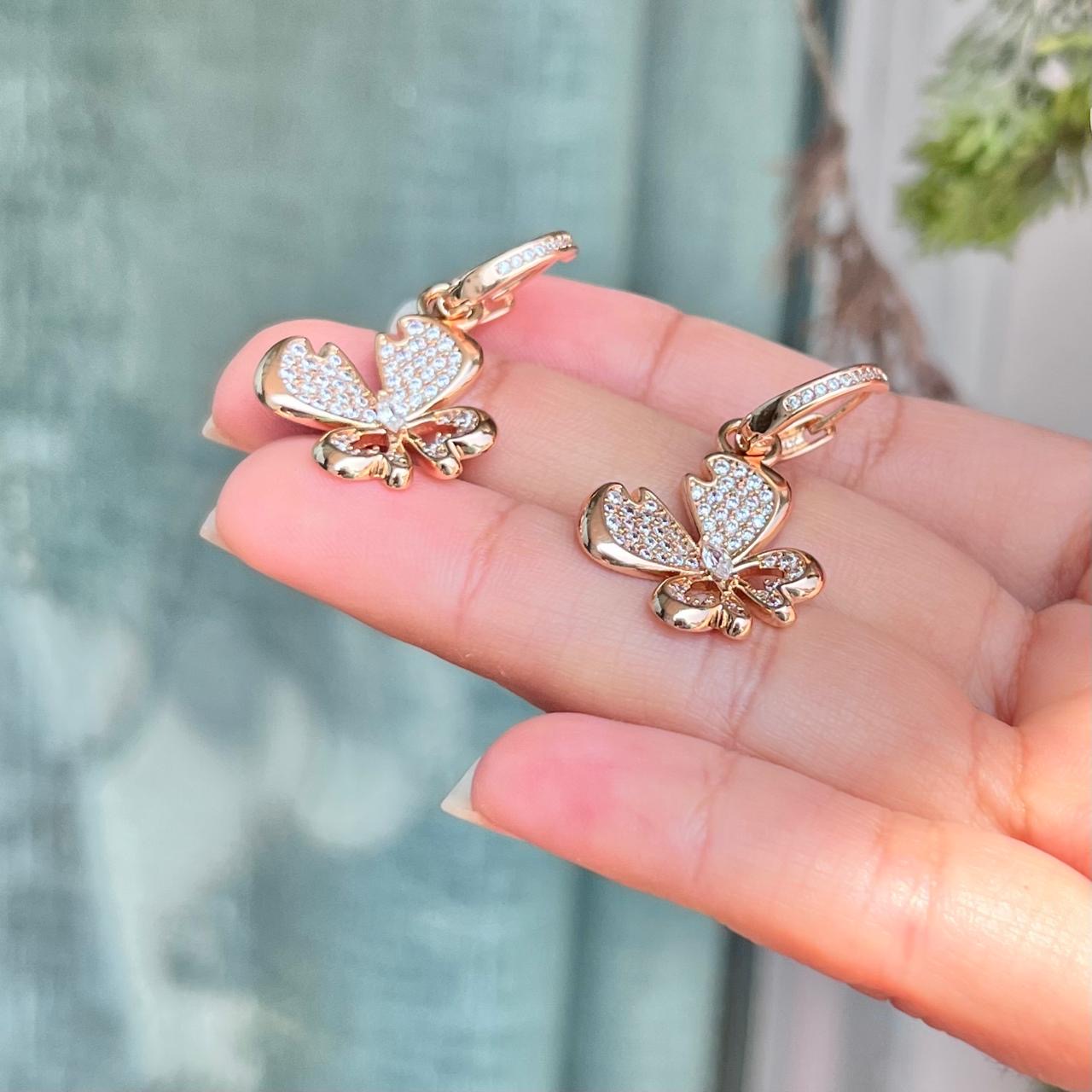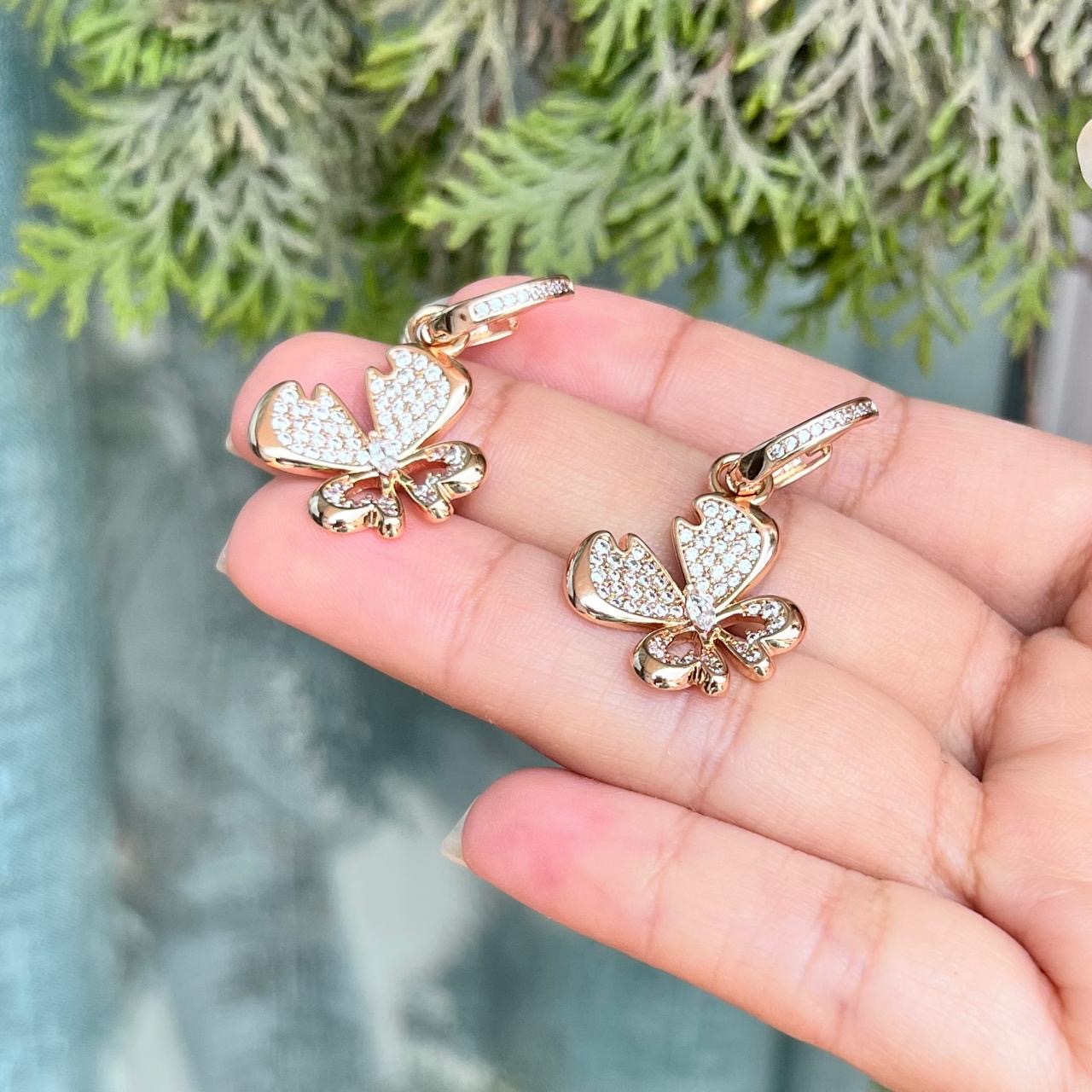 Modernos Aretes trabajados en acero quirúrgico 316L y con doble baño en oro 18k. e incrustaciones de cristales.