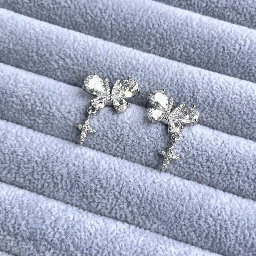 Modernos Aretes trabajados en acero quirúrgico 316L y con doble baño en oro 18k. E incrustaciones de cristales