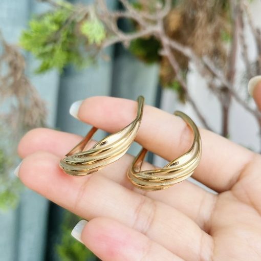 Hermoso arete trabajado en acero quirúrgico 316L, con doble baño en oro 18k, perla checa e incrustaciones cristales swarovski.