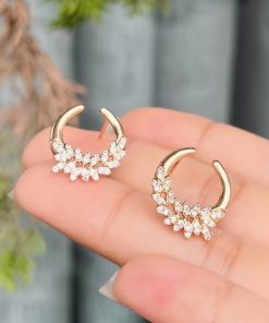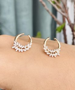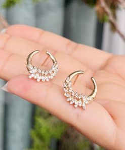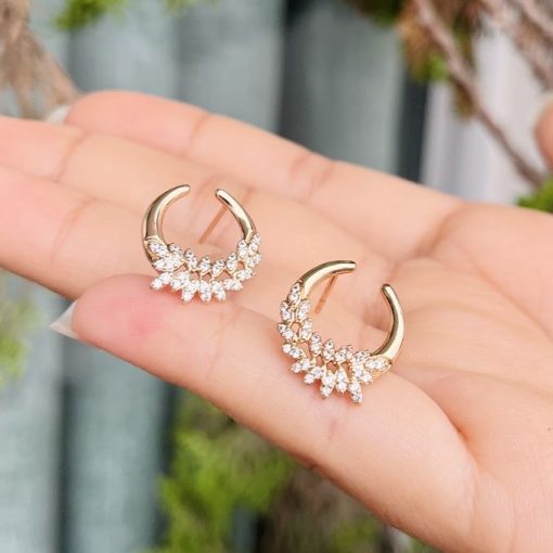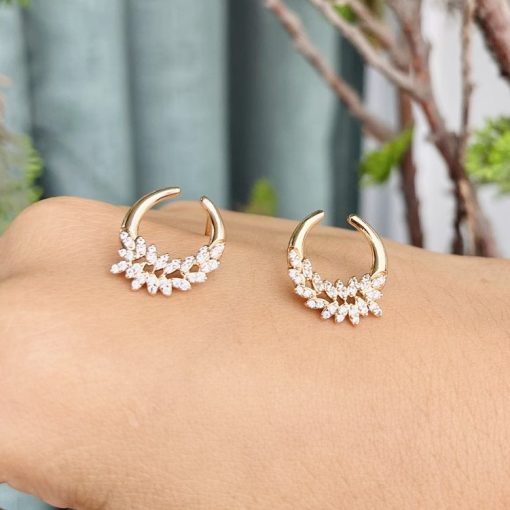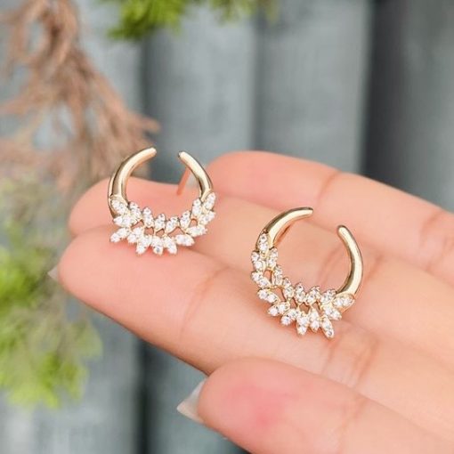 Modernos Aretes trabajados en acero quirúrgico 316L y con doble baño en oro 18k. e incrustaciones de cristales.