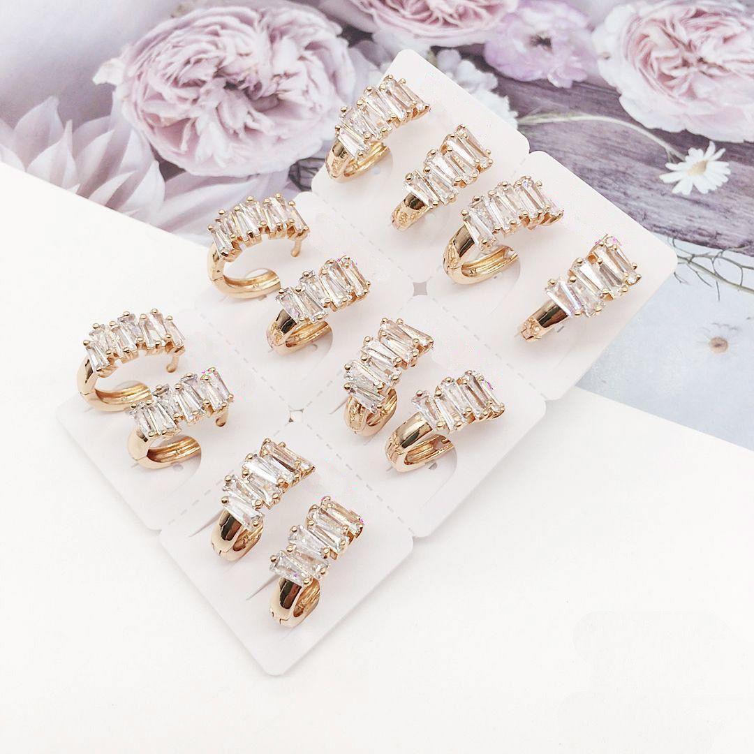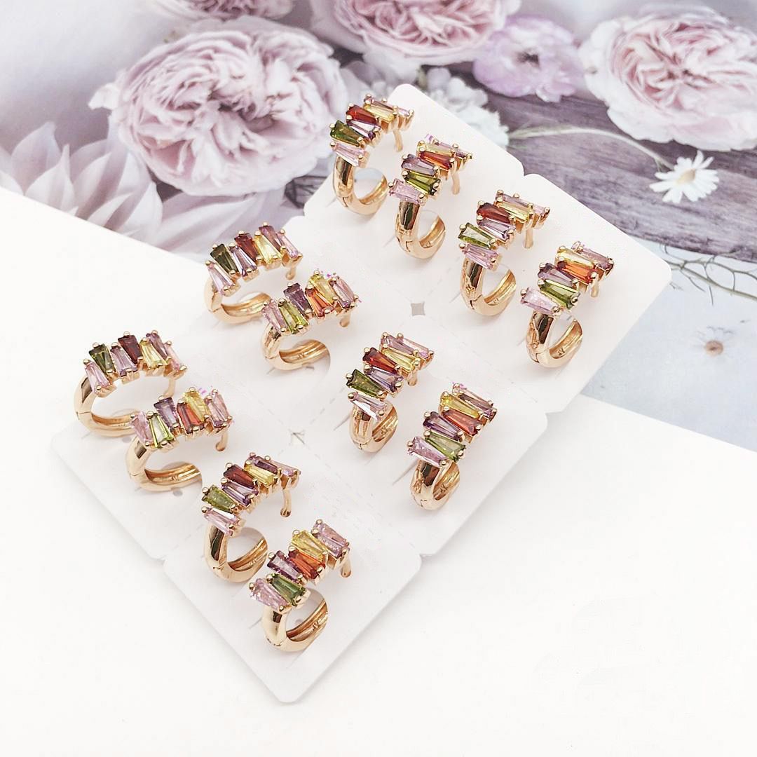 Modernos Aretes trabajados en acero quirúrgico 316L y con doble baño en oro 18k. E incrustaciones de cristales