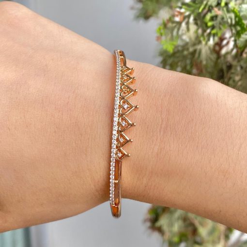 Moderno brazalete trabajado en acero 316L, con doble baño en oro de 18K. e incrustaciones de cristales.