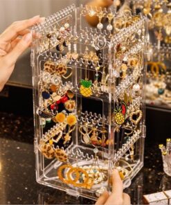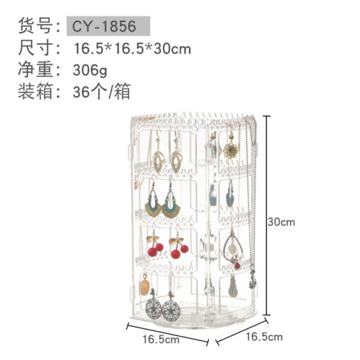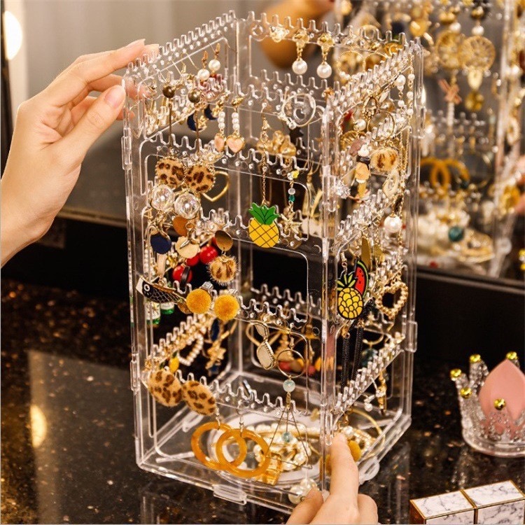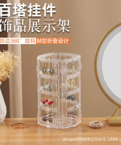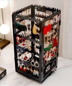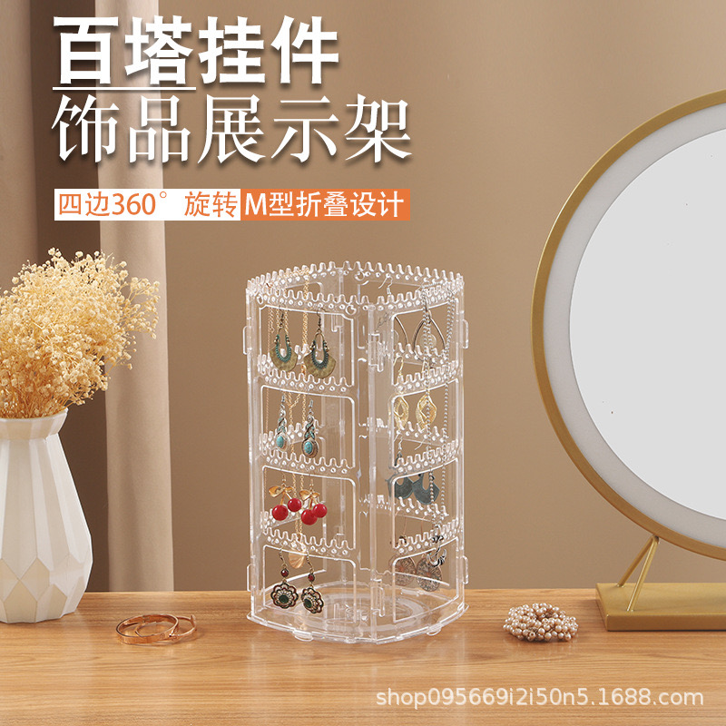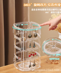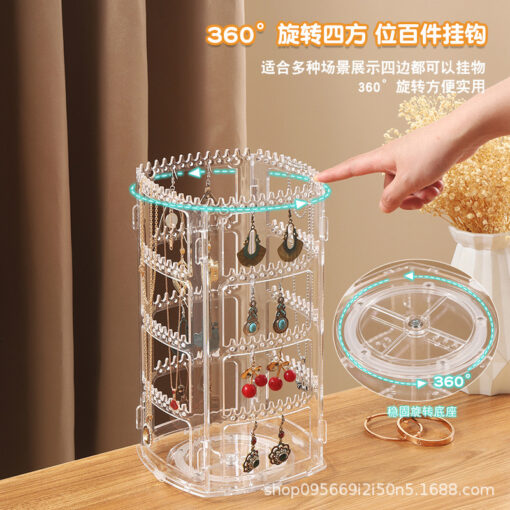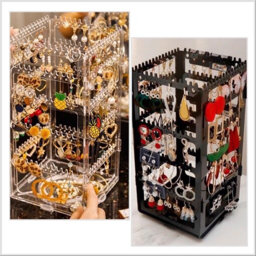 Exhibidor giratorio de 360° en acrílico (negro y transparente) para aretes, collares y pulseras. Estante y organizador de joyería.