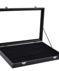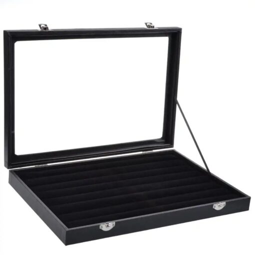 Caja de exhibición de joyería de terciopelo y cáñamo, organizador de almacenamiento de anillos.