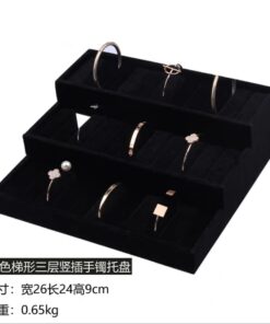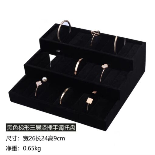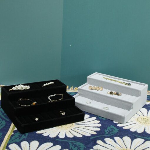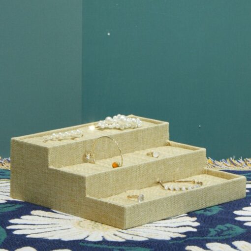 Caja de exhibición en tres niveles de joyería de terciopelo y cáñamo , organizador de almacenamiento múltiple.