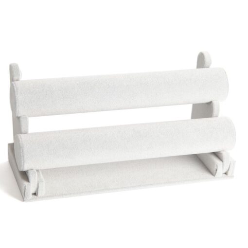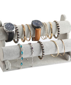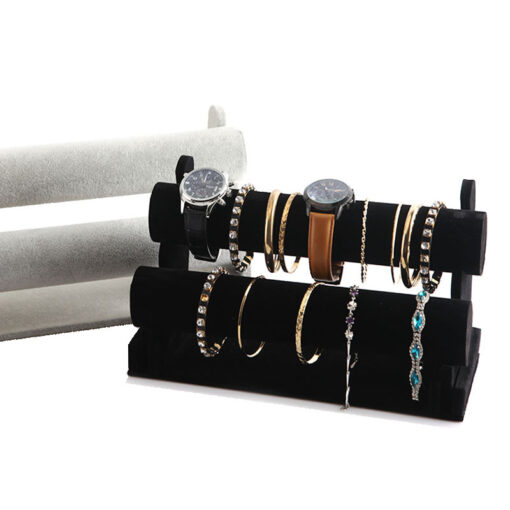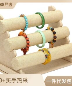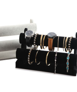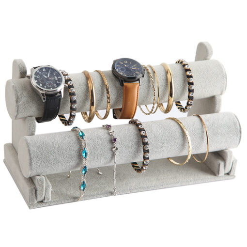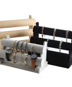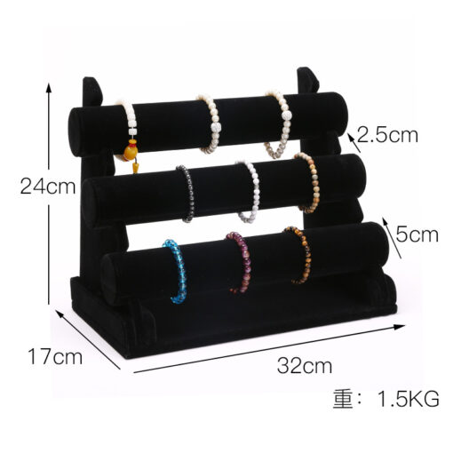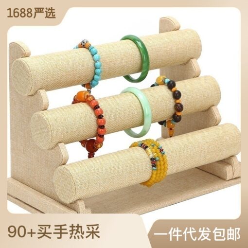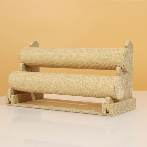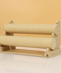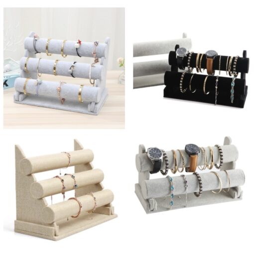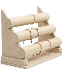 Soporte de exhibición de joyería de terciopelo y cáñamo de 3 niveles, organizador de almacenamiento de brazalete de reloj o collar.