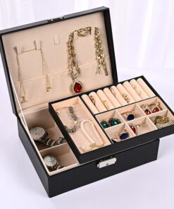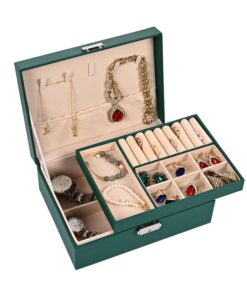 Bello joyero de cuerina de PU con múltiples espacios para joyas, caja organizadora de joyería. (Los colores son idénticos a la foto)