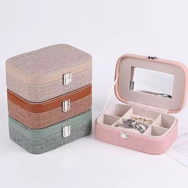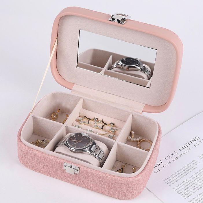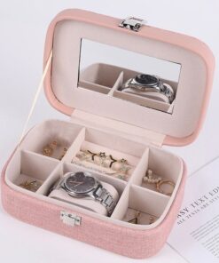Bello joyero portátil de cuero con múltiples espacios para joyas, caja organizadora de joyería.