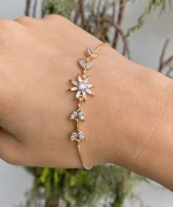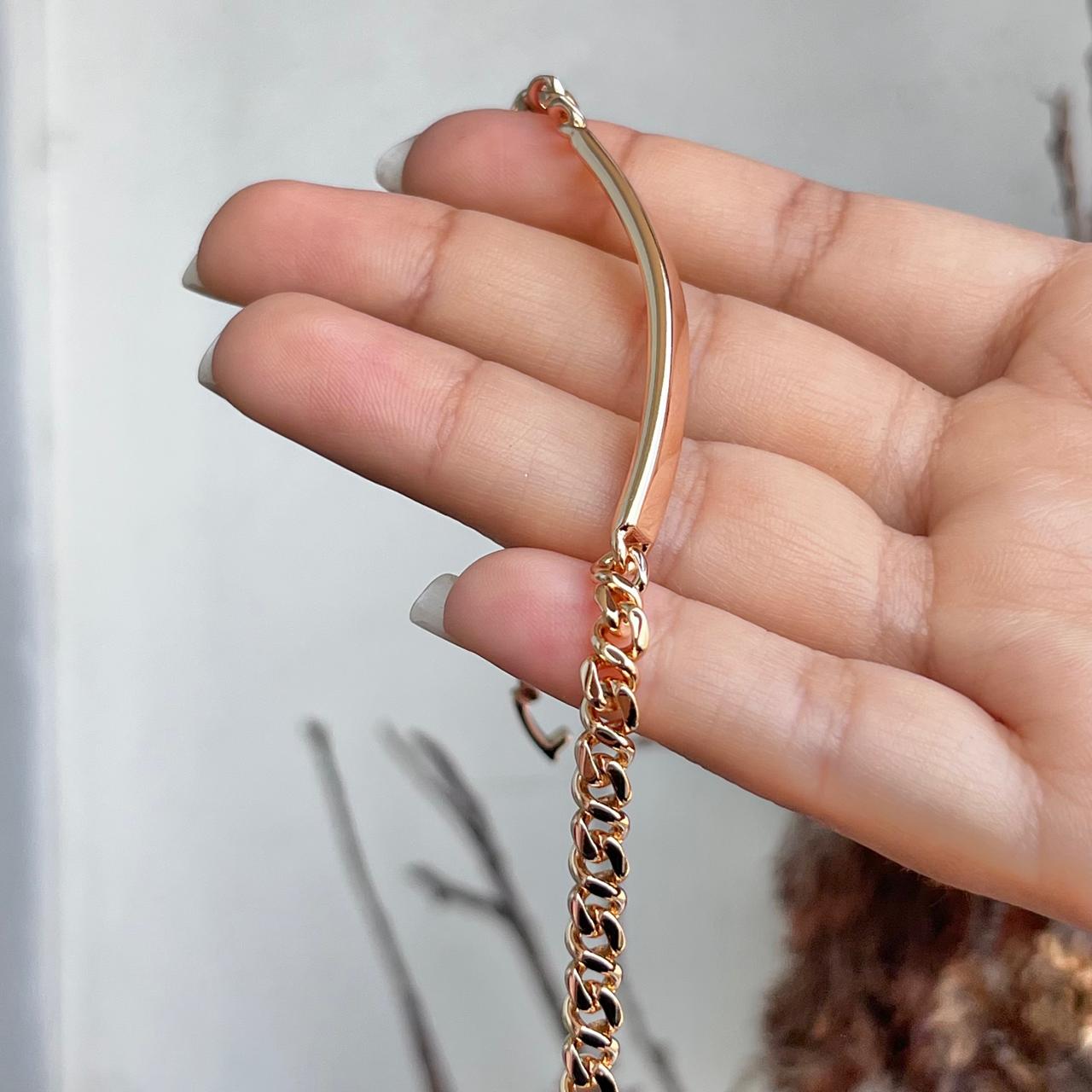 Hermosa pulsera trabajada en acero quirúrgico 316L con doble baño en 18K e incrustaciones de cristales.