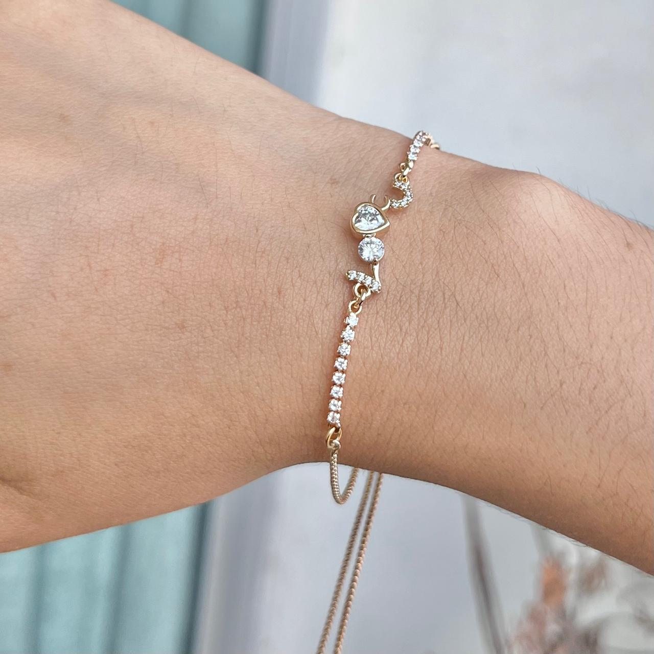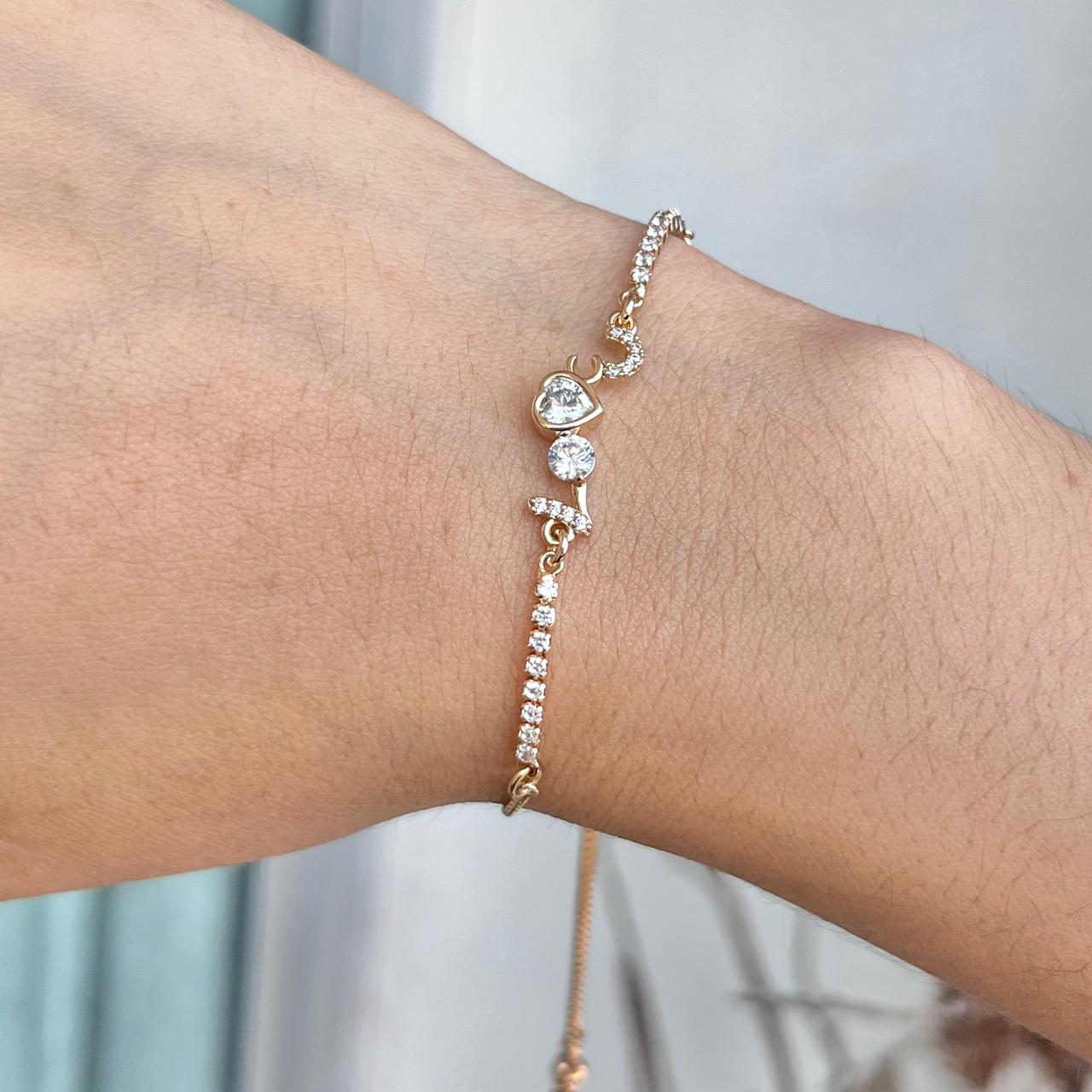 Hermosa pulsera trabajada en acero quirúrgico 316L con doble baño en 18K e incrustaciones de cristales.