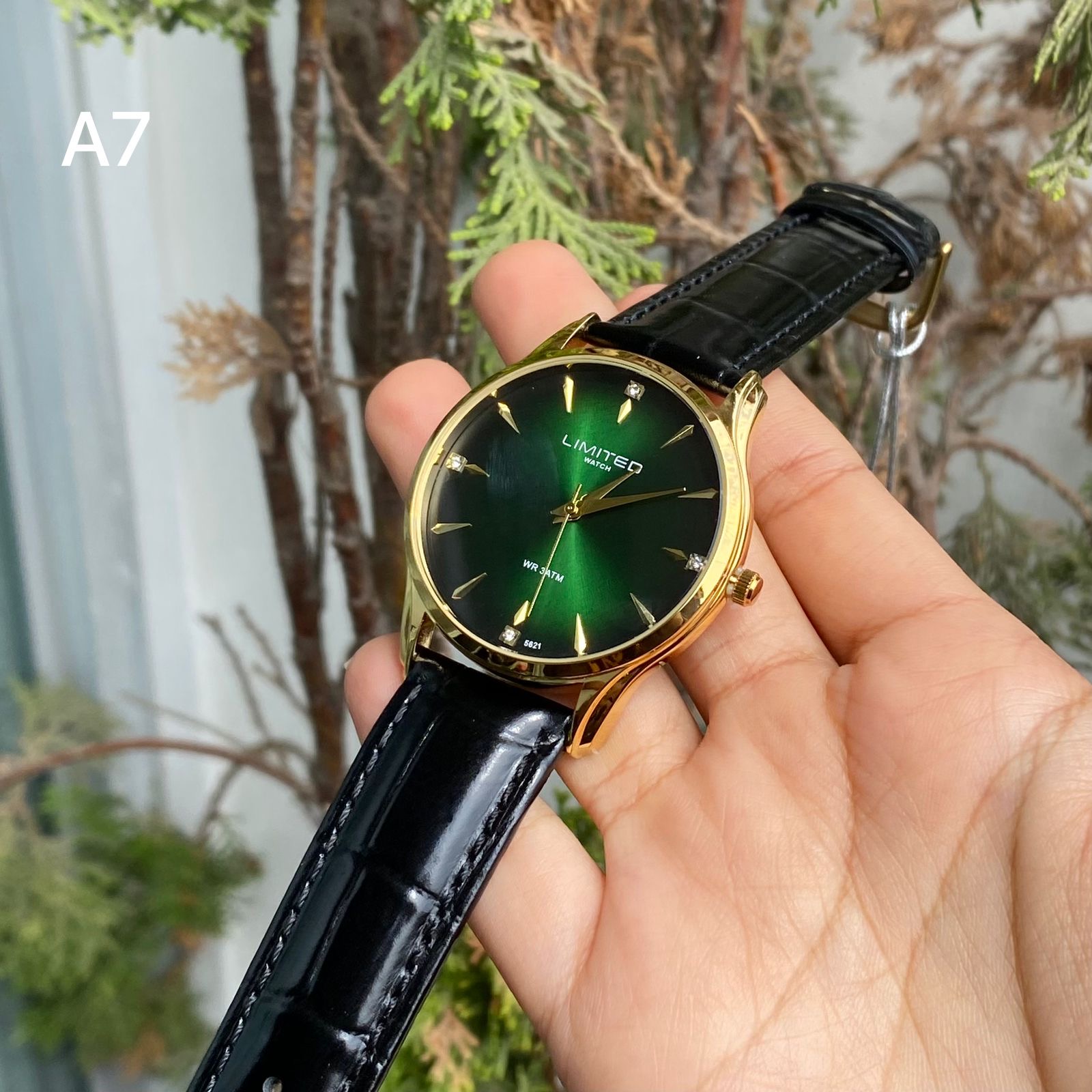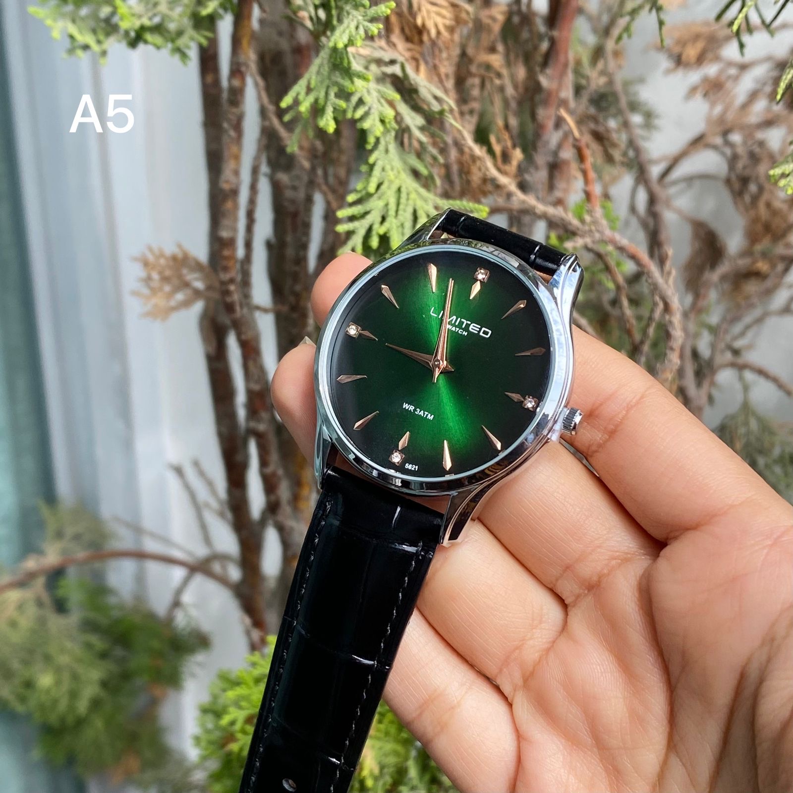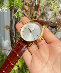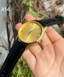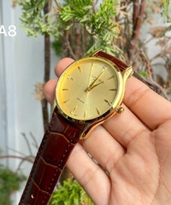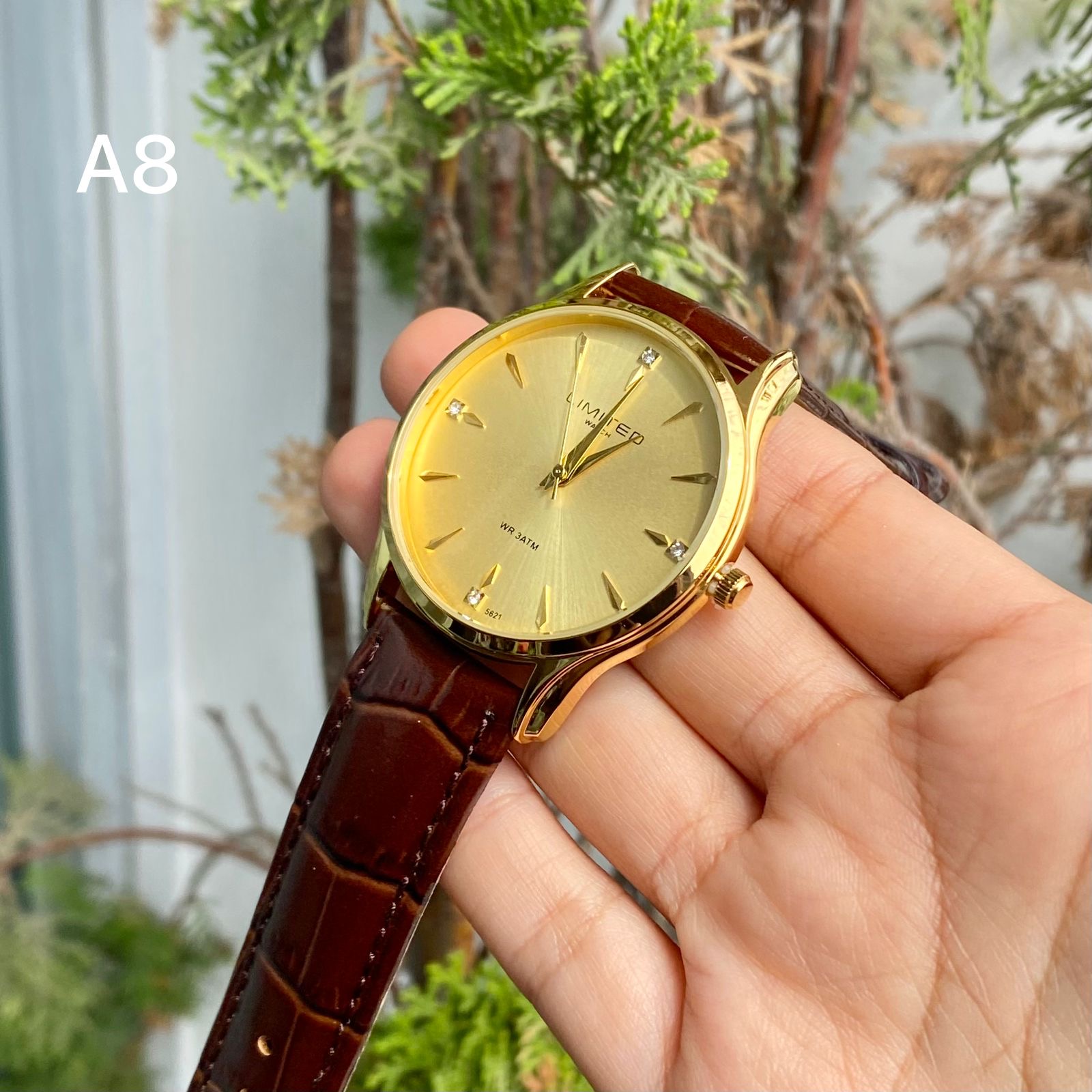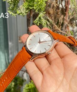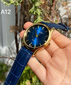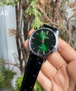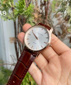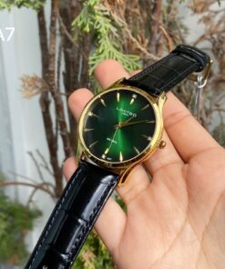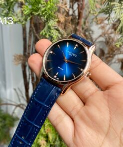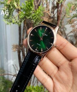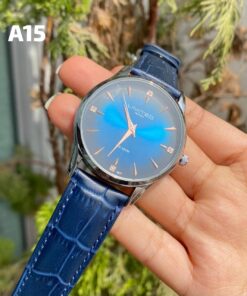 Elegante reloj analógico para Varón trabajado en acero 316L, viene con correa de cuero e inscrustaciones de cristales.