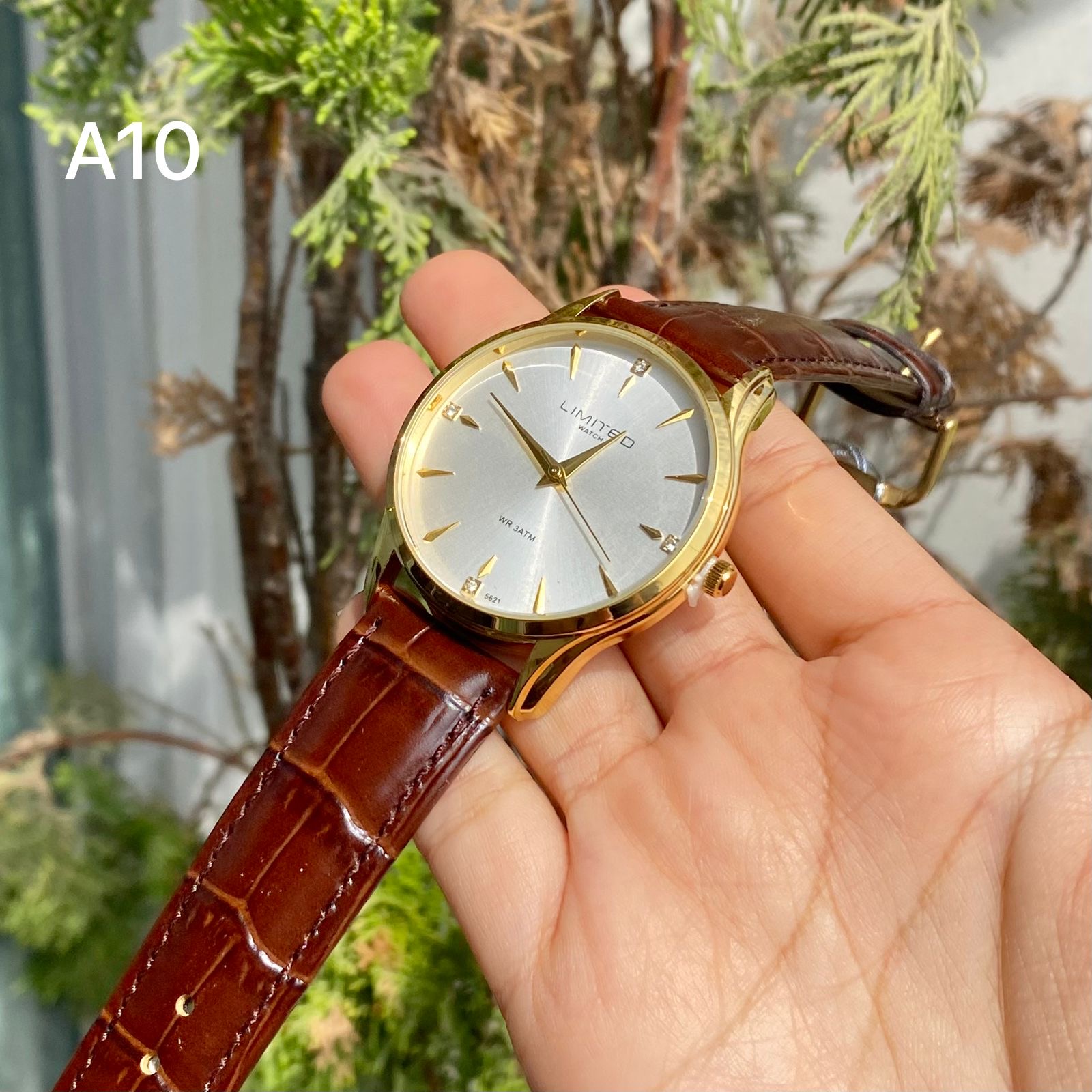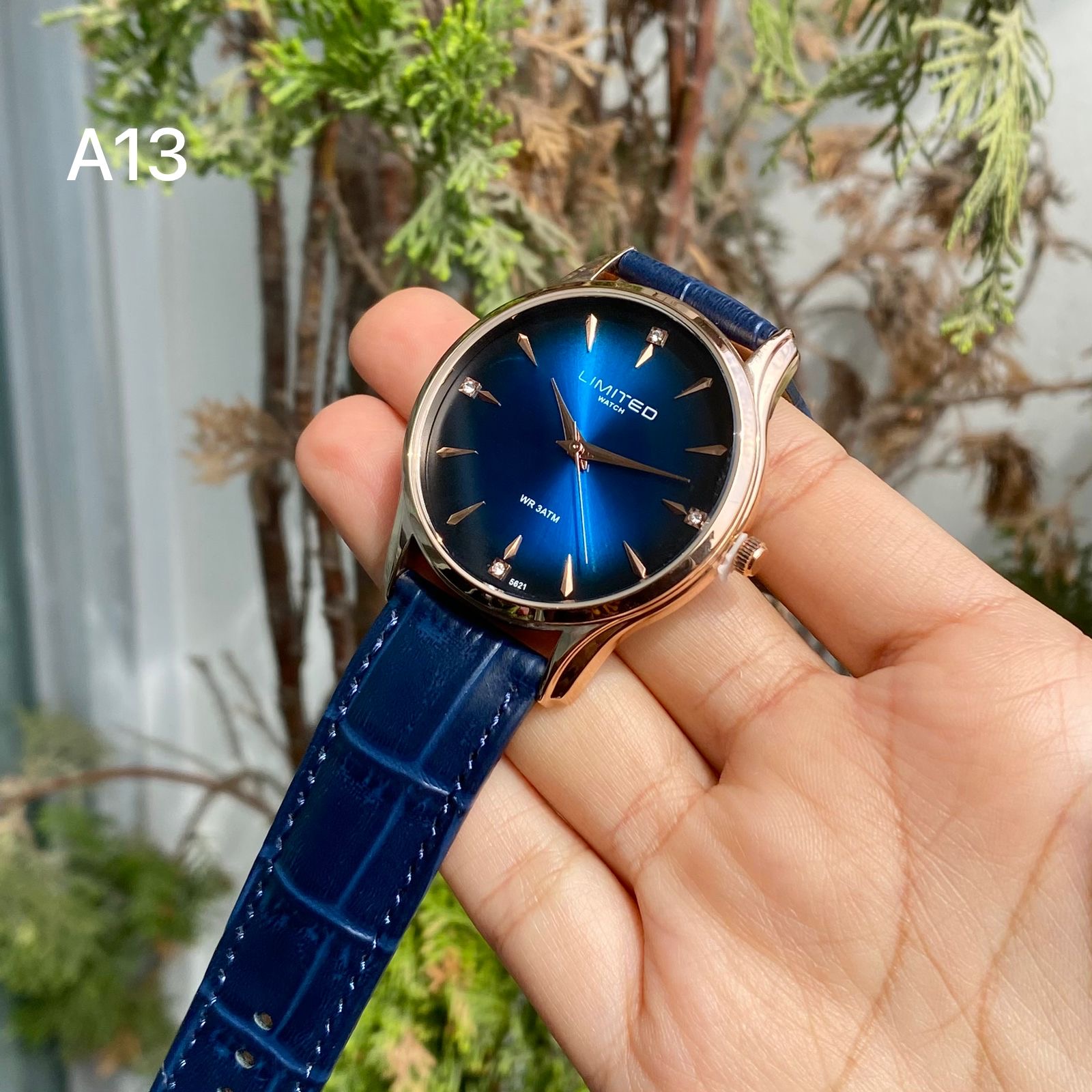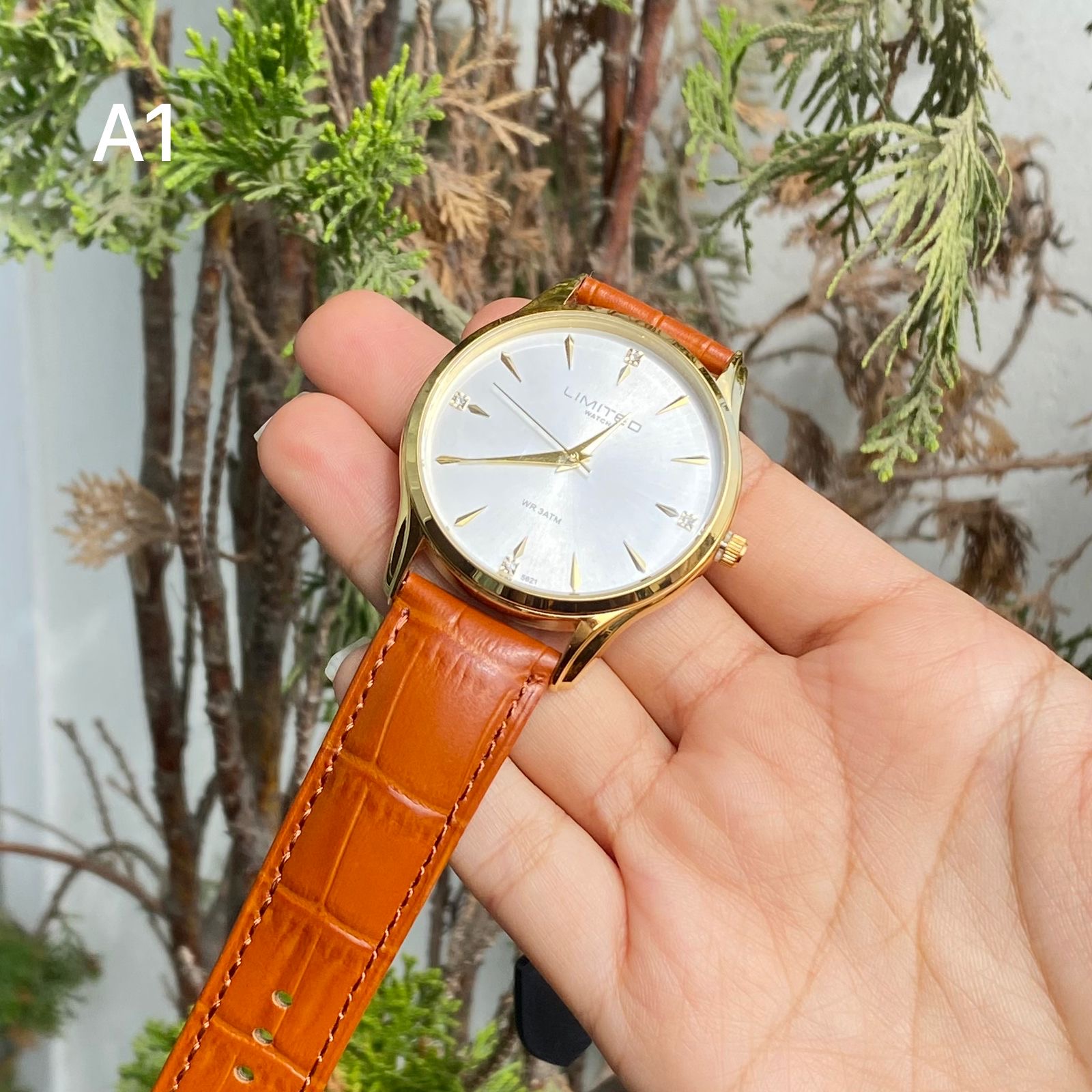 Elegante reloj analógico para Varón trabajado en acero 316L, viene con correa de cuero e inscrustaciones de cristales.