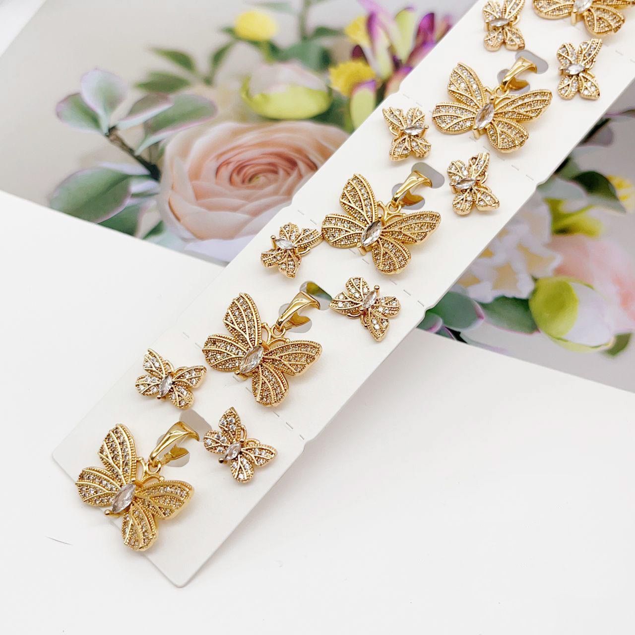 Hermoso set trabajado en acero quirúrgico 316L, con doble baño en oro 18k e incrustaciones de cristal .